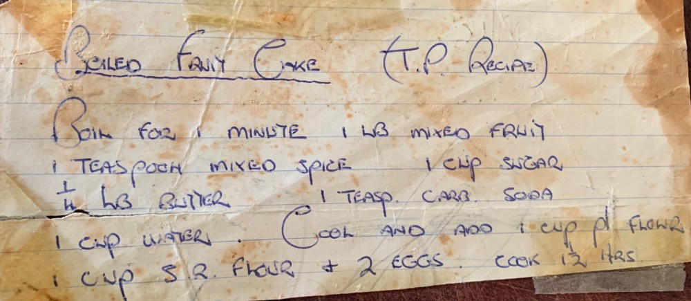 Comfort has a smell. Sometimes it’s an aroma so potent it can knock you a six. When I first gathered supplies to recreate my mother’s unfortunately named ‘boiled fruit cake’, I was not ready for it. Standing at the stove, my saucepan filled with a buttery mound of fruit and a blend of sugar, cinnamon, nutmeg and allspice, I waited for it to boil. Almost immediately the room was enveloped by the most heady fragrance and, without a moment’s warning, I was transported — I was back in my mother’s kitchen, a boy with wooden spoon in hand, mum looking over my shoulder. It was a moment … and extraordinary.
